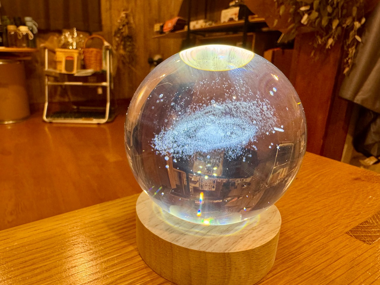 ガラスの球体の中に刻み込まれた幻想的な世界観。