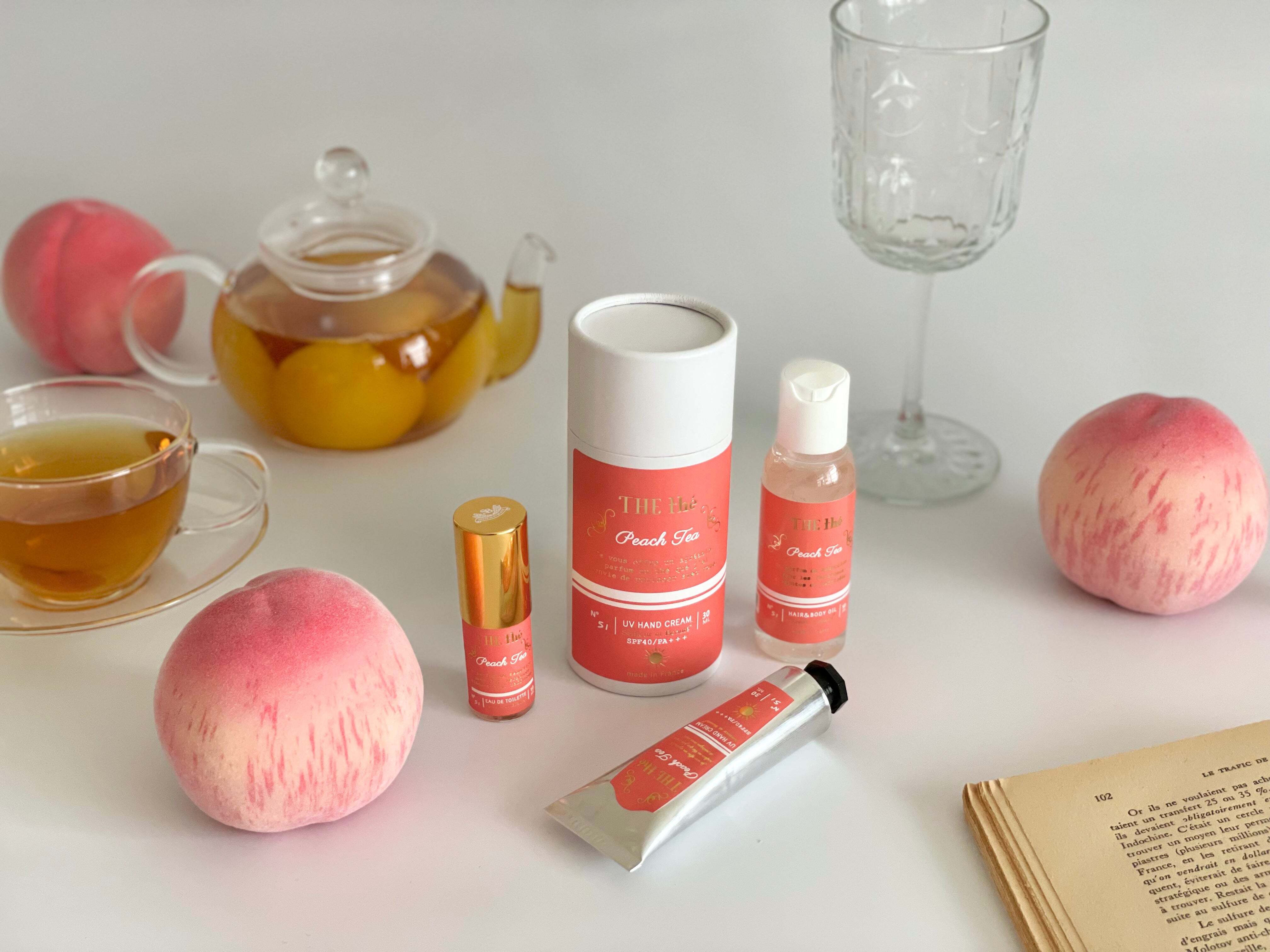●ピーチティー:もぎたてのピーチのようなみずみずしさに、午後のティータイムを思わせるムスクのやさしい甘さが重なる香り。 ピーチのジューシーな明るさと、ムスクのやわらかな深みが重なり合った、甘さと透明感のバランスが絶妙なフレグランス。