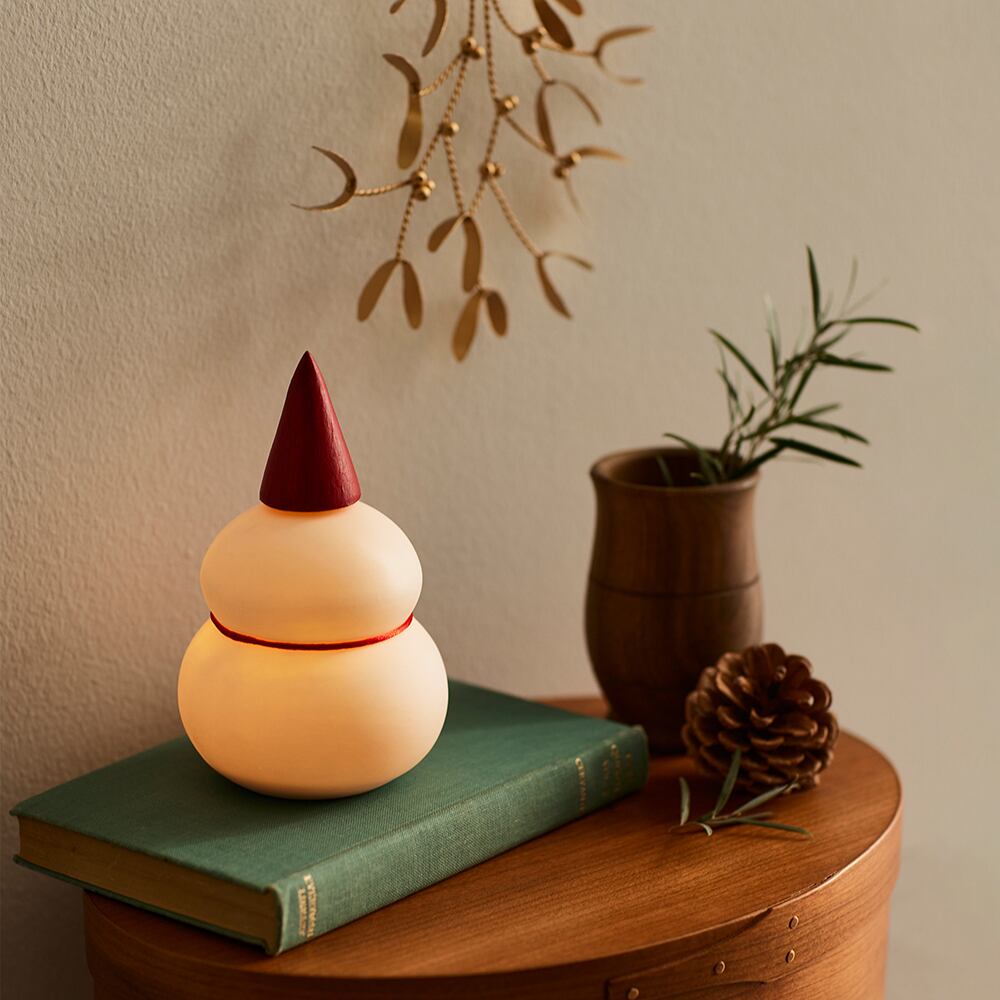 鏡餅のオブジェとしても使える 半磁器のLEDライト 雪だるま / L