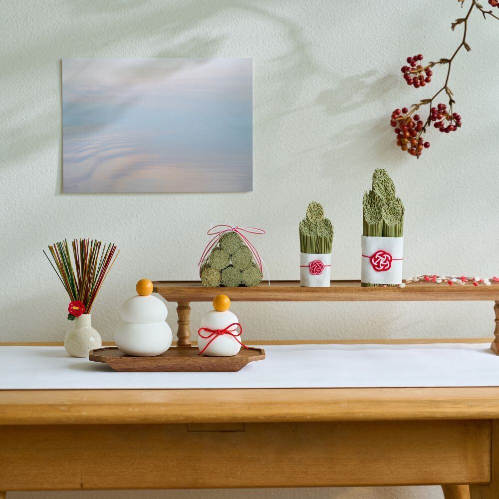 付属で飾り紐、ウッドでできた雪だるまの帽子、鏡餅の橙がセットされるので、お好みの飾り方をお楽しみください!