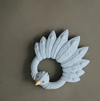 大切な赤ちゃんの手に握りやすいサイズのPEACOCK(クジャク)の歯がためです。