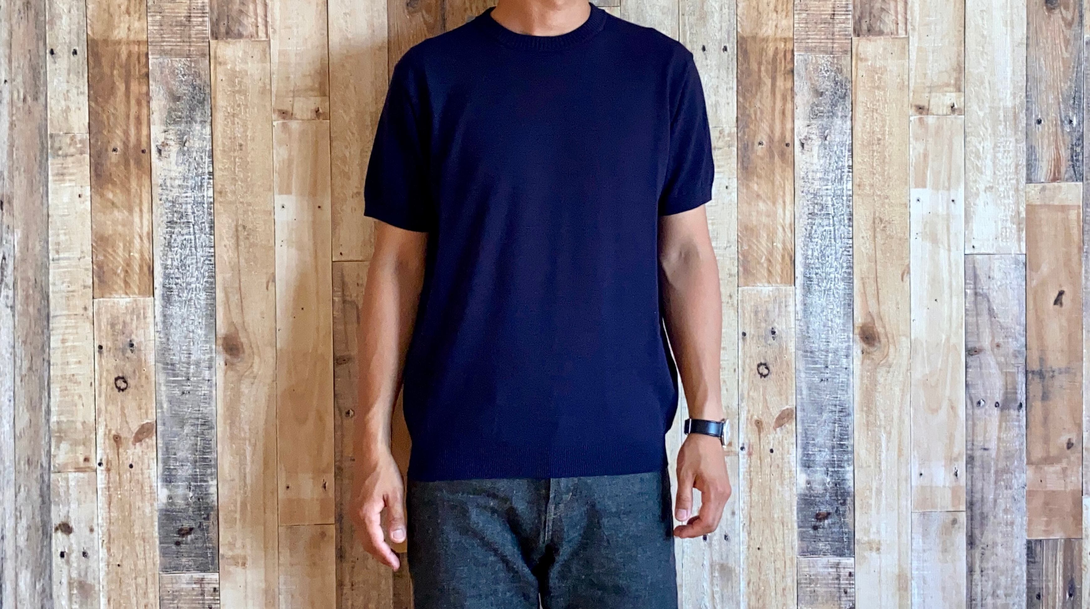 スイスの老舗紡績メーカー「スポエリー社」が独自開発した「アイスコットン」を使用したクルーネックの半袖サマーニット。