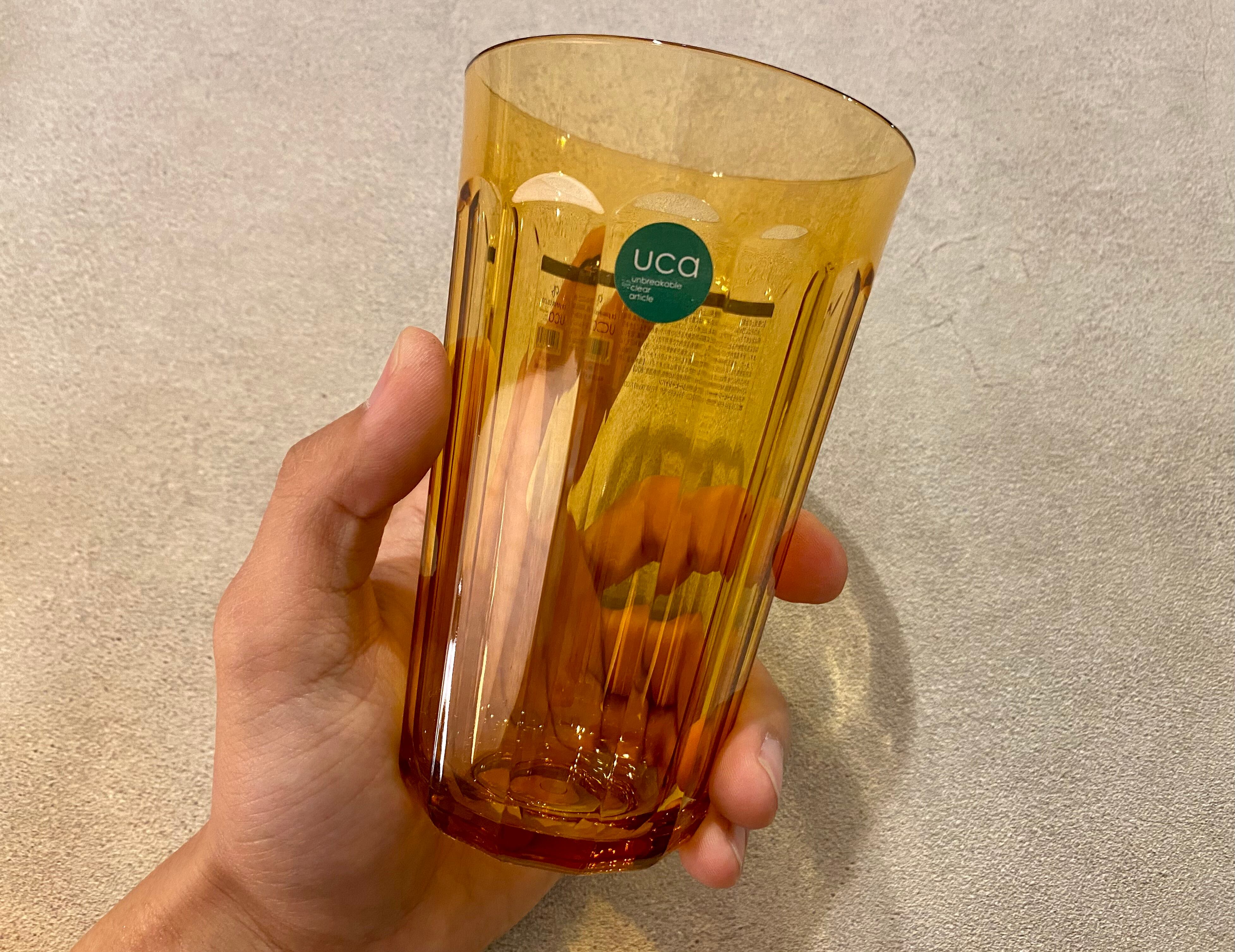 ガラスの様な透明感が特徴の樹脂製で持ち運びにも適しており、室内だけでなくアウトドアにもおすすめです。